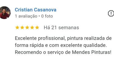 Com mais de 18 anos de experiência, a Mendes Pinturas se destaca pela busca contínua por excelência em acabamentos e entregas em tempo recorde sem deixar de lado a qualidade! Nosso compromisso é superar expectativas por meio de técnicas modernas, atendimento personalizado e respeito ao seu tempo e investimento.